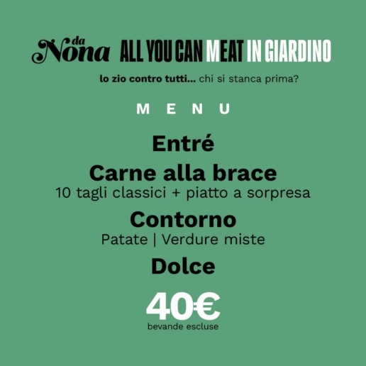 Dalle h 19.00 Cena con menu alla carta nel giardino di Nona >> prenotazione obbligatoria